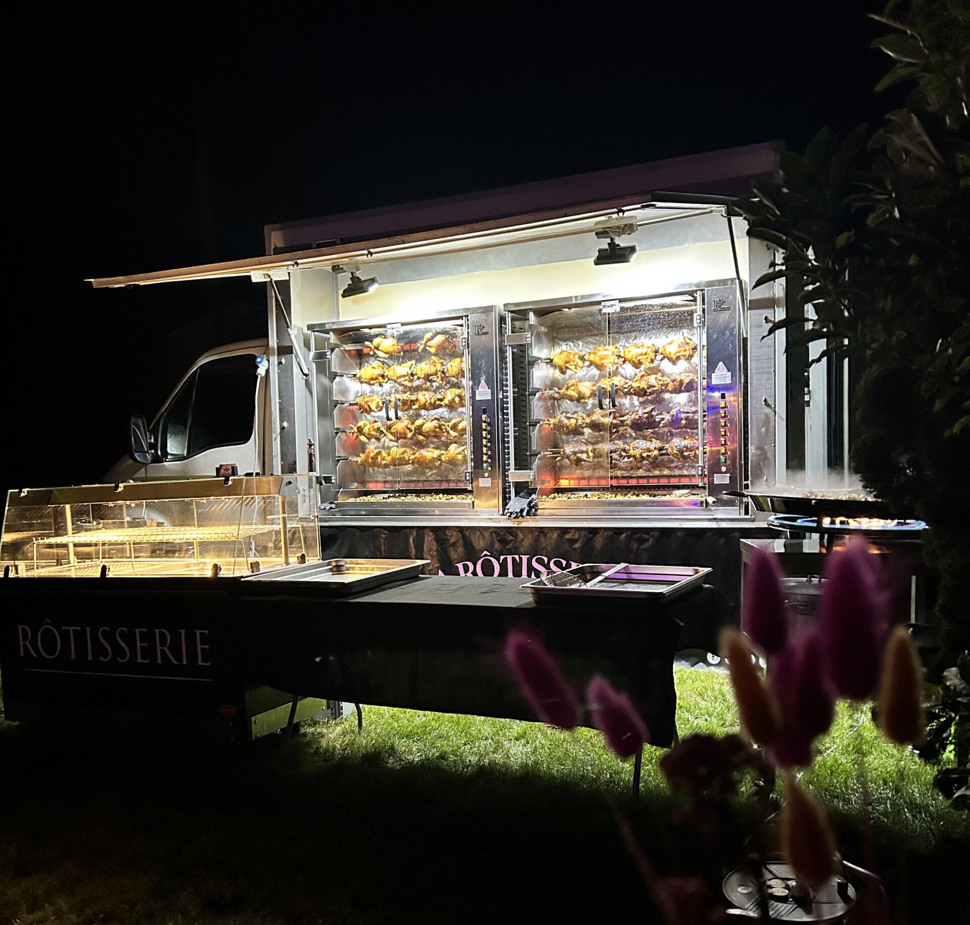 La rôtisserie se déplace pour vos évènements, pour rester et proposer une animation à l’odeur irrésistible ou bien simplement en livraison. Elle vous prépare des repas chauds ou froids, avec entrée ou dessert, selon vos envies.